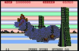 C.H.: No encuentro muchas cosas que podría decir que fueron fáciles!. Probablemente, el código más complejo debe ser aquel que controla a los enemigos aéreos y jefes. Son cosas que requirieron de una cuidadosa planificación de estructuras de datos y código; por ello, Space Harrier debió ser re-escrito un par de veces en los últimos años. En todo caso, el dragón de dos cabezas fue el que más trabajo demandó para hacer que se parezca al original.