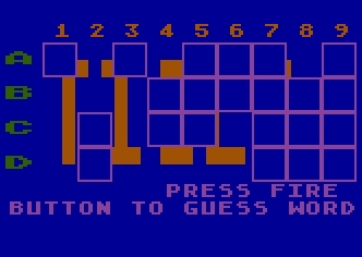Encontramos las palabras ocultas en el modo Guessword de Matchboxes, el entrañable puzzle de memoria de Brøderbund Software (1983).